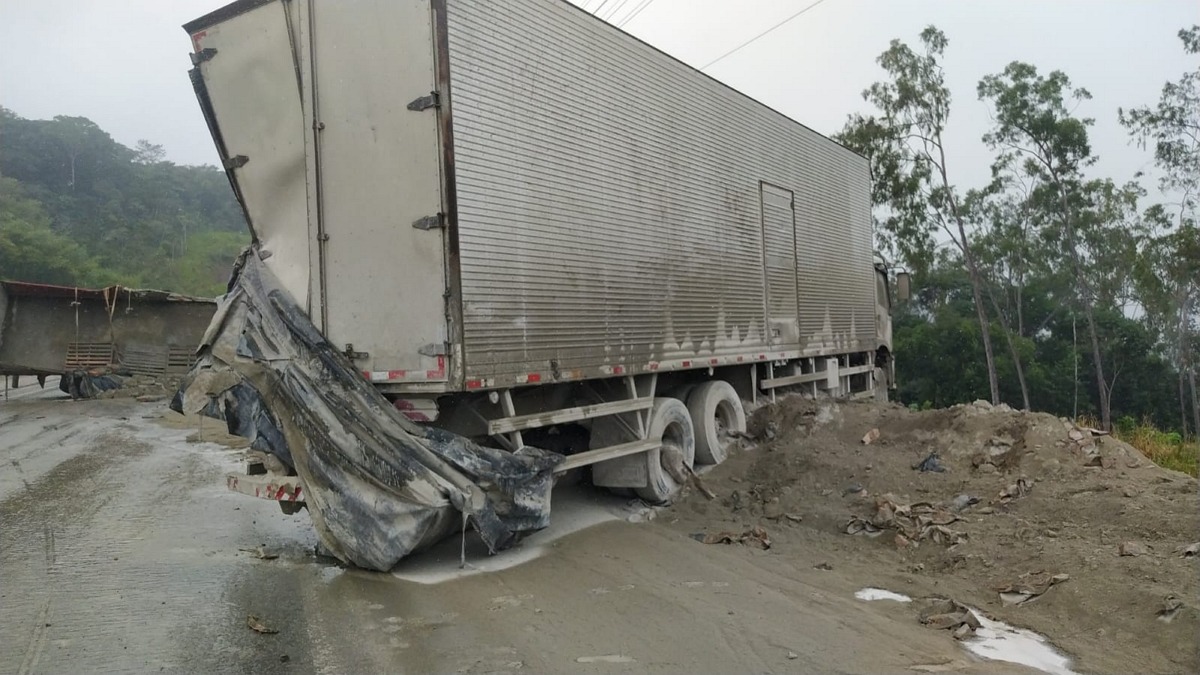 De acordo com os vestígios encontrados no local, uma carreta, carregada com cimento, colidiu na traseira de um caminhão baú, provocando o tombamento completo da carreta sobre a via. Com o impacto o caminhão baú saiu da pista, mas felizmente seu condutor não sofreu ferimentos.