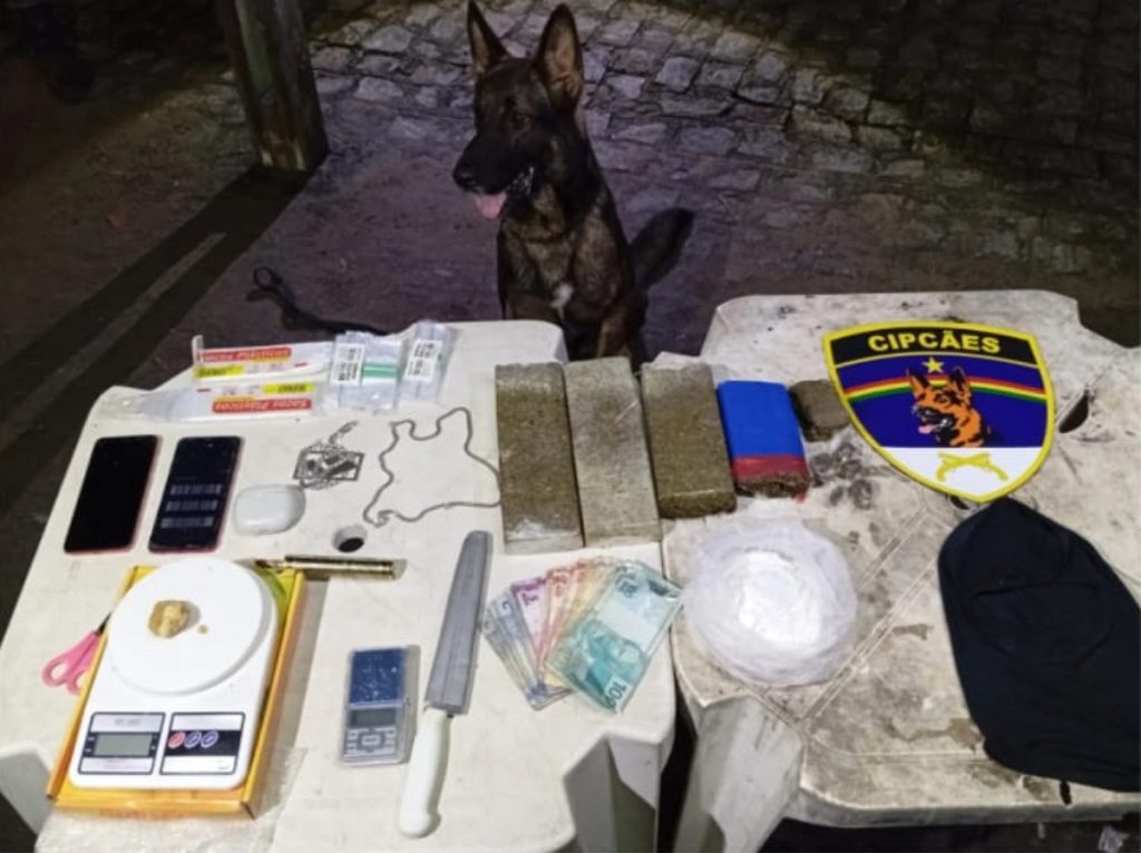 Policiais militares da Companhia Independente de Policiamento com Cães (CIPCães) prenderam, na tarde desta sexta-feira (5), um homem que estava com uma mochila com drogas e com mandado de prisão em aberto, no bairro de Dois Unidos, em Recife.