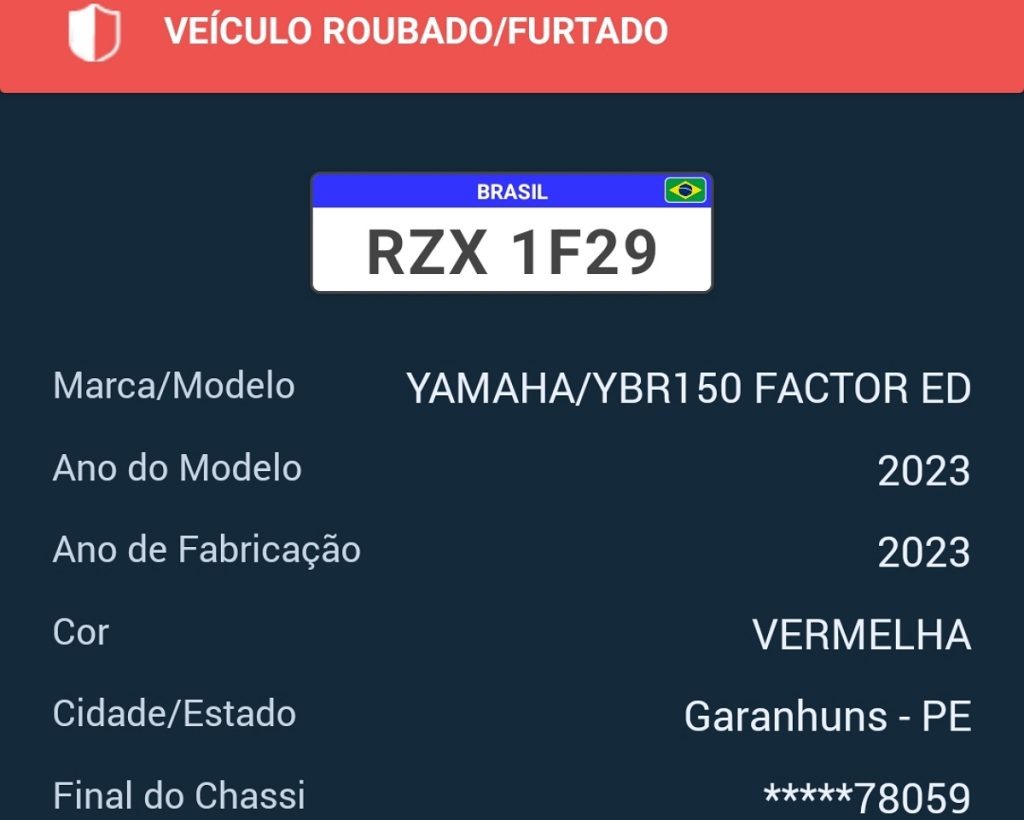 De acordo com o relato, dois indivíduos armados, que estavam em uma moto, abordaram o cidadão que estava na motocicleta Yamaha Factor vermelha, placa RZX-1F29. Sob ameaça lhe obrigaram entregar o veículo e um celular.