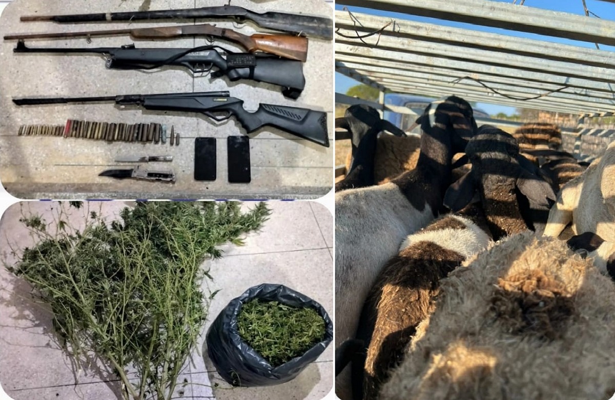 Foi feita uma varredura e encontrados 16 dos 17 bodes e cabras subtraídas do criador. Além dos animais, foram descobertos um cultivo de maconha com aproximadamente 100 pés da erva, que foi incinerada no próprio local; 6,09kg da mesma droga, pronta para consumo; duas facas; duas espingardas artesanais e duas espingardas de chumbo; munições de diversos calibres, deflagradas e intactas; além de dois celulares.