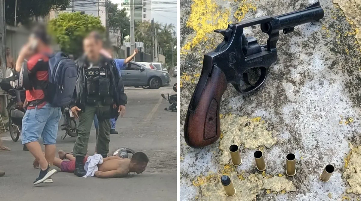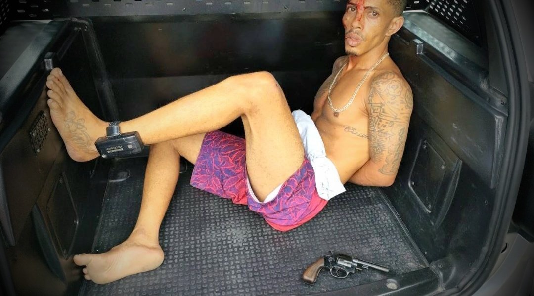 De acordo com a polícia, com o criminoso foi apreendido um revólver calibre 38, com quatro munições intactas e uma deflagrada. Ele ainda tentou se livrar do flagrante jogando a arma em cima de uma residência.
