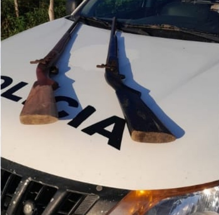 Ao chegarem à residência, confirmaram as alegações das vítimas e descobriram que o acusado possuía duas espingardas do tipo soca-soca em sua casa. As armas foram apresentadas pelos próprios moradores.