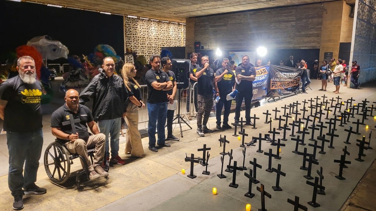 O Sindicato dos Policiais Civis de Pernambuco realizou, no início da noite dessa terça-feira(13), no saguão do Museu do Cais do Sertão, Recife Antigo, local de abertura do 18º Fórum Brasileiro de Segurança Pública, mais um protesto na agenda pública da governadora Raquel Lyra. O Sindicato reivindica a destinação de parte dos investimentos do Juntos pela Segurança para a estruturação e valorização da Polícia Civil.