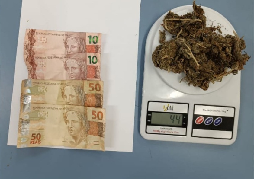 Durante as rondas e abordagens no bairro, os policiais se depararam com um indivíduo em atitude suspeita na Rua Quipapá. A abordagem resultou na apreensão de três porções de maconha, que totalizaram 44 gramas, escondidas na cintura do suspeito.