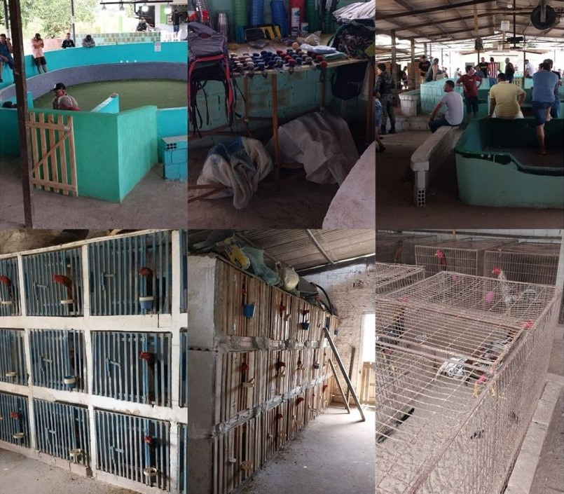 Quarenta e duas pessoas foram conduzidas à DP de Nazaré da Mata, neste sábado (31), após desarticulação de rinha de galo na cidade de Carpina, realizada por policiais militares da CIPOMA e do 2° BPM, que em cumprimento de ordem de serviço, ainda apreenderam 41 animais e um aparelho celular com queixa de roubo.