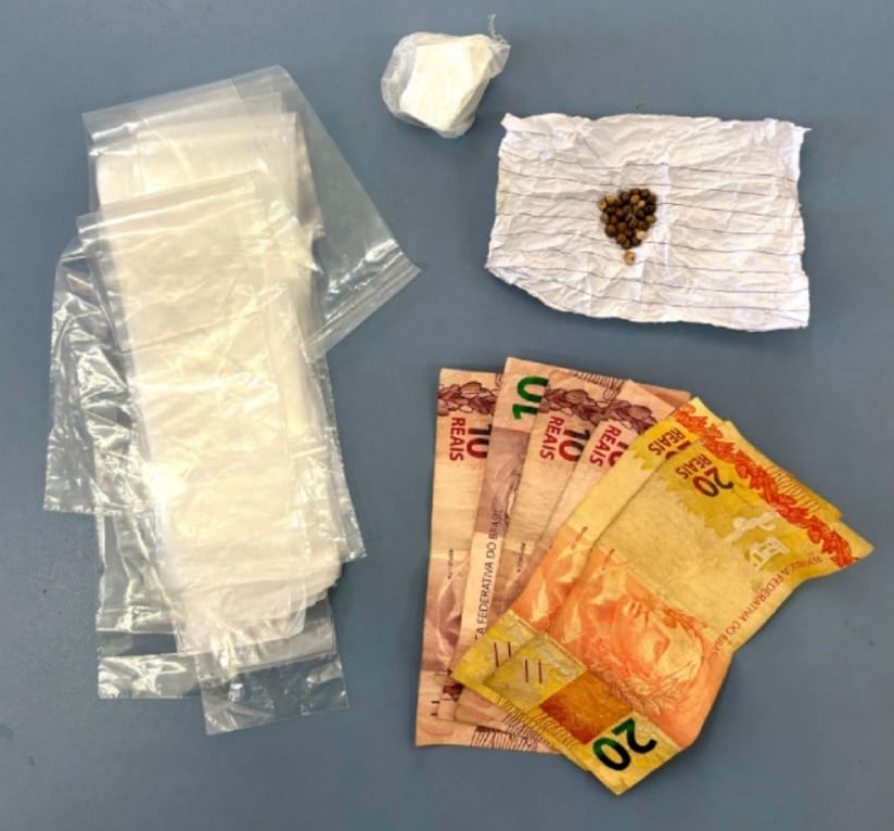 Durante a operação, o Núcleo de Inteligência acionou o GATI, passando a descrição do suspeito. Após localizá-lo, a equipe realizou a abordagem e questionou-o sobre as denúncias. O homem, então, admitiu a posse de drogas e autorizou a entrada em sua residência. No local, em presença da esposa, ele entregou aos policiais uma pedra de cocaína com aproximadamente 10 gramas, além de 44 embalagens que, segundo a polícia, eram usadas para a venda da droga. Também foi encontrado um papelote contendo sementes de maconha.