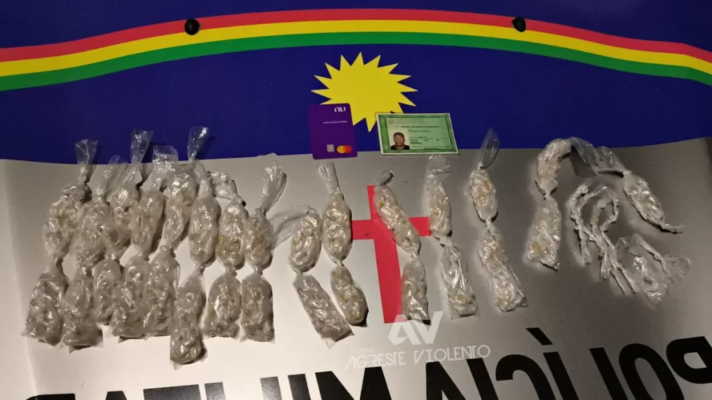 Além da droga, foi constatado que o celular de Estevão estava registrado como produto de roubo. O suspeito e o material apreendido foram encaminhados à Delegacia de Plantão em Palmares para as medidas cabíveis.