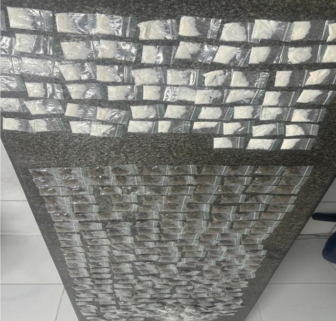 Nas embalagens, havia 335 big bigs de maconha e 63 pinos de cocaína. Diante dos fatos, o material foi apresentado na Central de Plantões da Capital, para a adoção dos procedimentos formais da apreensão.