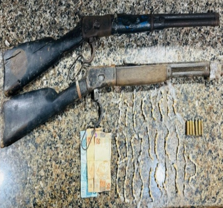 Um dos envolvidos acabou levando o efetivo ao local onde guardavam dois rifles calibre 44 e seis munições do mesmo calibre, além de 199 pedras de crack.