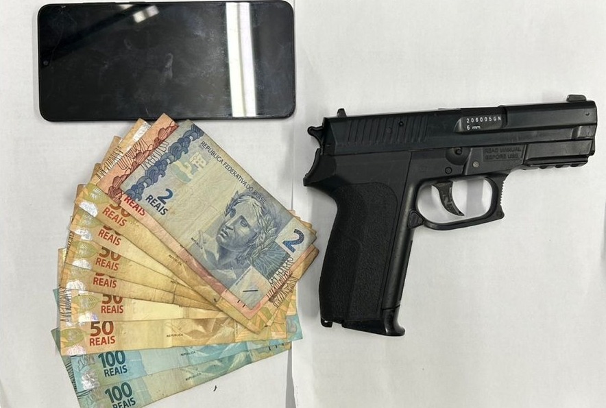 A equipe conseguiu interceptá-los e, após abordagem, encontrou com os mesmos um simulacro de pistola e a quantia de R$ 512,00.