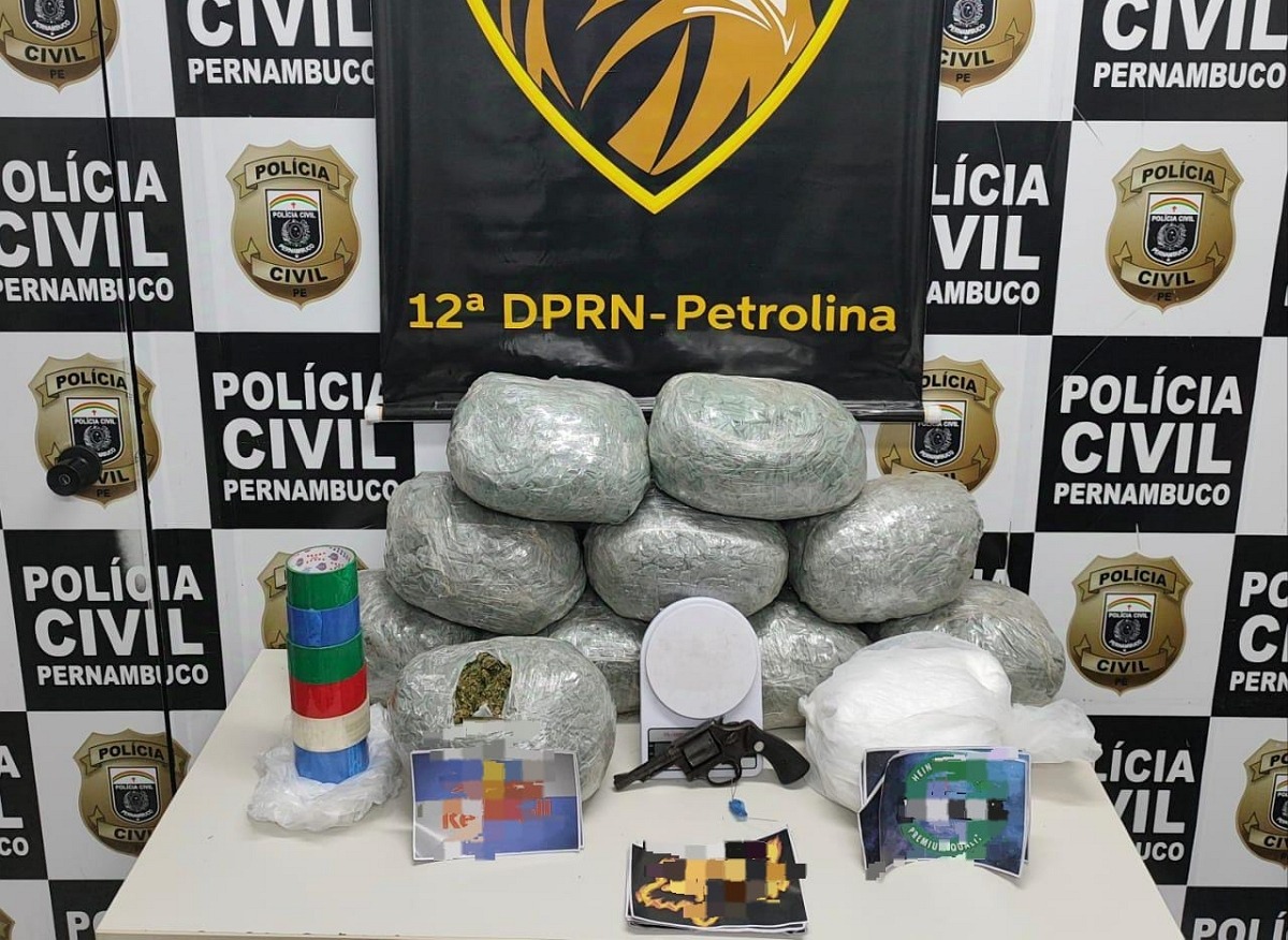 Na tarde desta terça-feira, a Polícia Civil de Pernambuco realizou uma importante operação de combate ao tráfico de drogas em Petrolina. Agentes da 12ª DENARC, sob o comando do delegado Joseilton Sampaio, prenderam um suspeito em flagrante, apreenderam 10 kg de maconha, conhecida como “flor chilena”, 1,3 kg de cocaína e um revólver calibre .38.