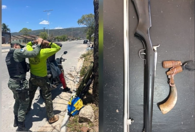 Na manhã deste domingo (3), a Polícia Militar realizou a apreensão de duas espingardas em Águas Belas, no Agreste de Pernambuco. Durante rondas de rotina pela cidade, a equipe policial avistou dois indivíduos em uma motocicleta, sendo que o passageiro carregava uma mochila volumosa sobre as pernas.