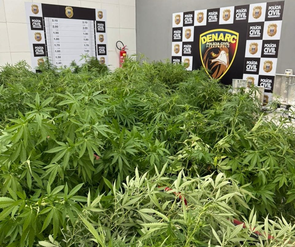 O homem estava furtando energia elétrica para manter uma estufa no terreno do imóvel, onde foram apreendidos 100 pés de maconha, pesando mais de 226 quilos.
