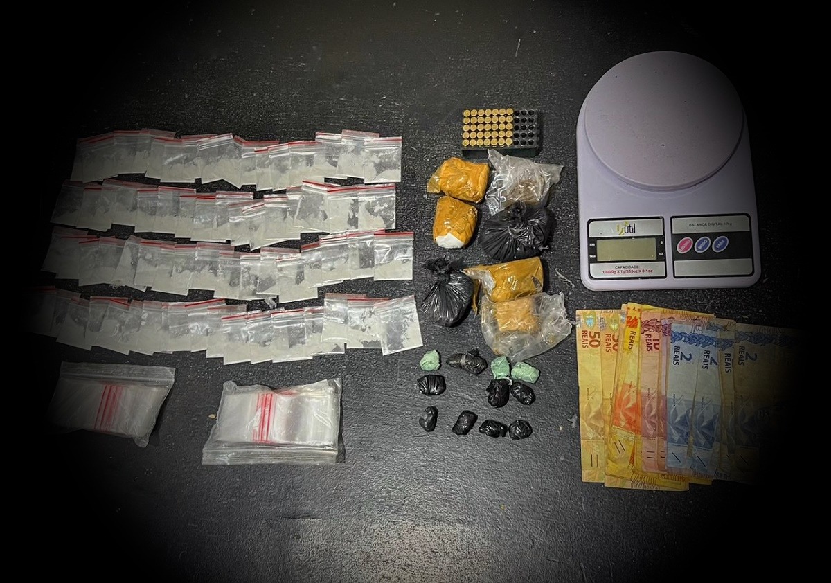 Durante a “Operação Madrugada Segura”, os policiais abordaram David Henrique Pereira da Silva, de 25 anos. Com ele, foram encontrados 99 gramas de cocaína, 127 gramas de maconha, 35 munições calibre 22, além de uma balança de precisão e R$ 414,00 em espécie.