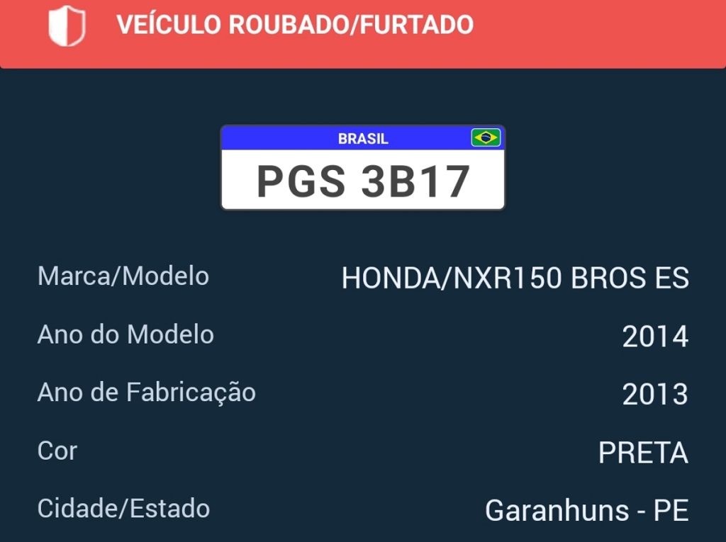 Na noite desta segunda-feira (2), uma moto Honda Bros de cor preta, placa PGS-3B17, foi tomada de assalto na BR-423, no município de Saloá, no Agreste de Pernambuco.