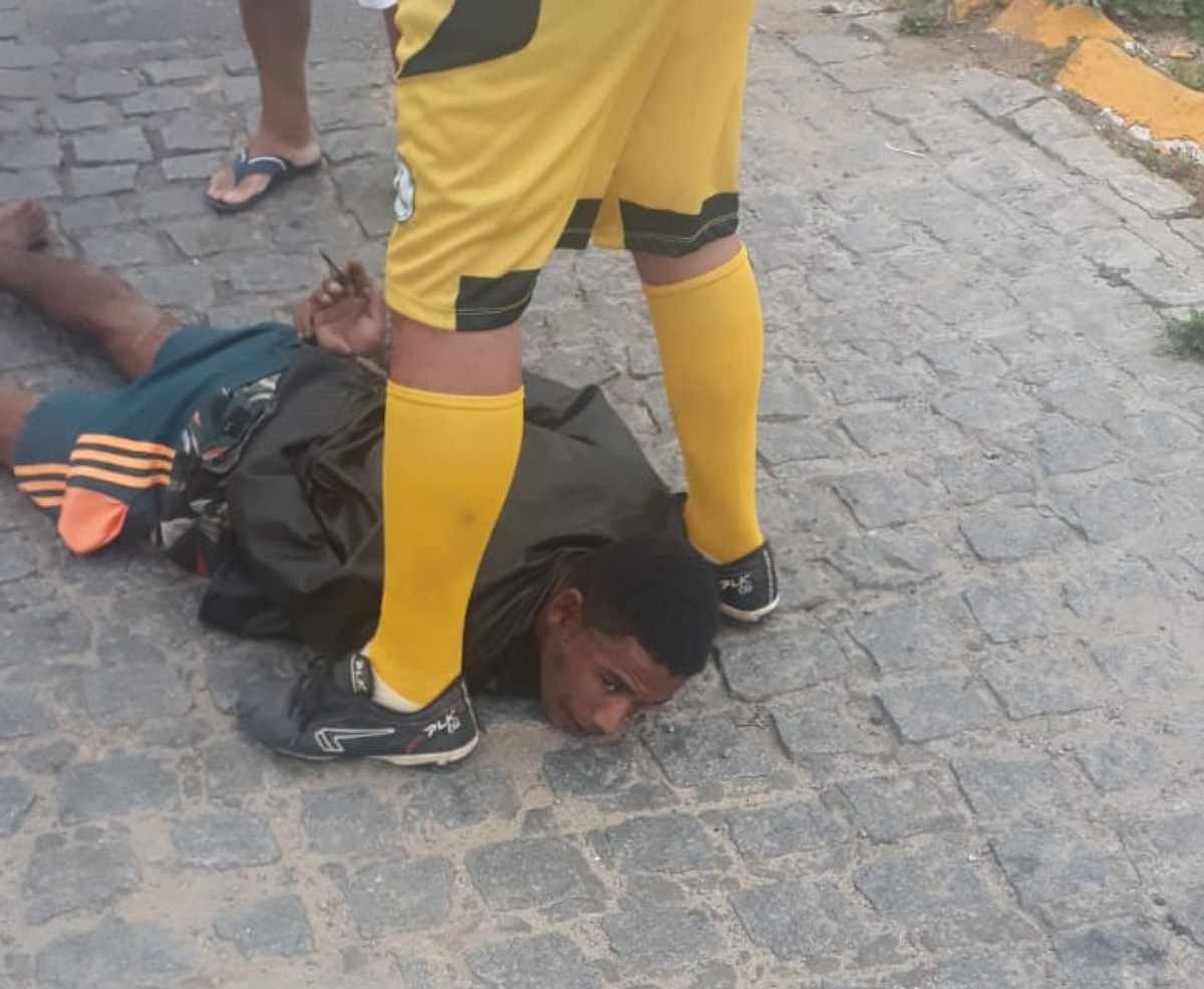 De acordo com informações da Polícia Militar, João Paulo Bezerra Ferreira abordou a vítima enquanto pilotava uma motocicleta, agarrou-a pelo pescoço e anunciou o assalto. No entanto, a mulher conseguiu escapar, e a ação foi testemunhada por homens que jogavam em um campo de futebol. Os populares reagiram e imobilizaram o suspeito até a chegada da polícia.