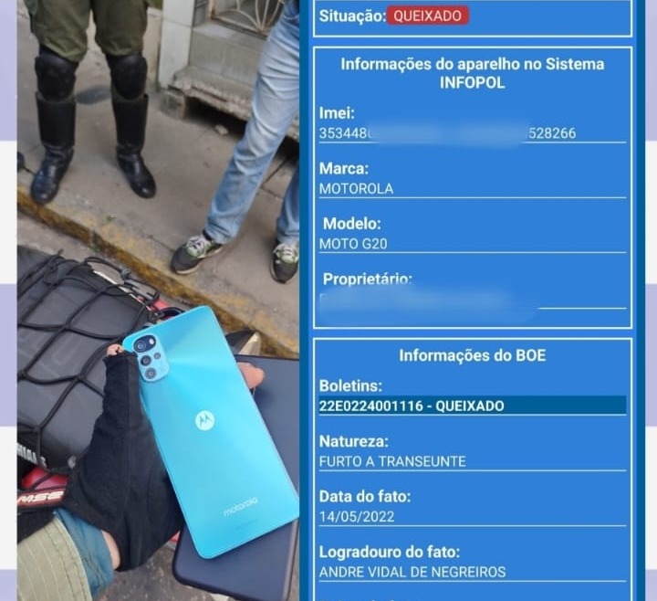 Durante a abordagem, os policiais realizaram uma verificação nos objetos em posse dos indivíduos e constataram que o telefone de um deles possuía registro de queixa no sistema Alerta Celular, indicando que o aparelho havia sido roubado.