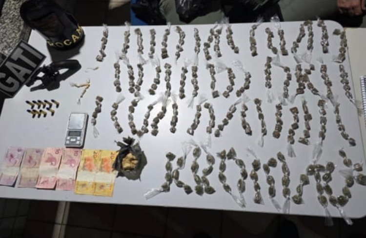Na abordagem, foram apreendidos um revólver calibre .38 com nove munições, 300 “big bigs” de maconha, 22 pedras e mais 45g de crack, além de uma balança de precisão e R$ 70 em espécie. O adolescente e o material foram encaminhados à Delegacia de Plantão do município para os procedimentos legais cabíveis.