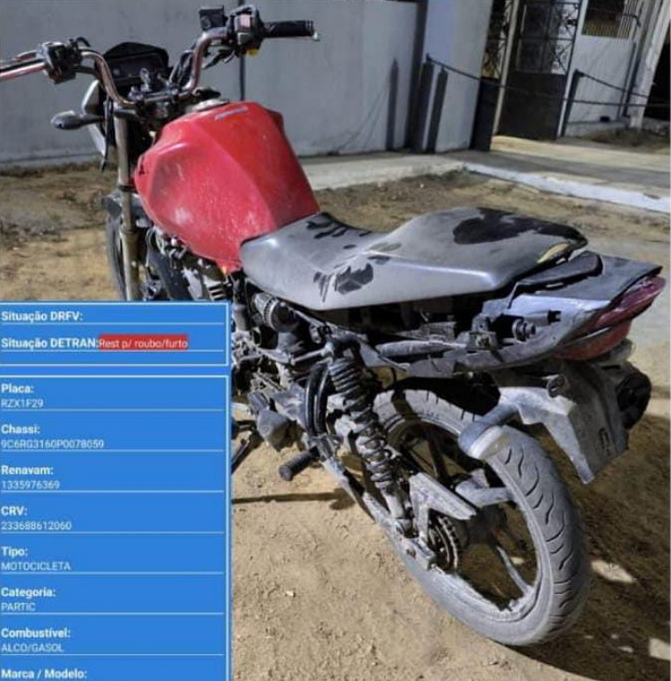 Ao chegar ao endereço, a equipe conseguiu localizar a motocicleta e identificar o suposto proprietário. Diante da confirmação da queixa de roubo, a moto foi apreendida, e o caso foi encaminhado à delegacia de Polícia Civil para as providências cabíveis.