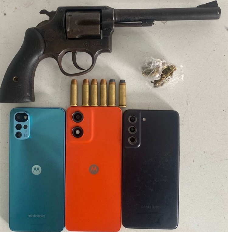 Considerados alvo prioritários e de alta periculosidade, o trio foi localizado e capturado e com ele havia um revólver calibre 38 e três celulares.