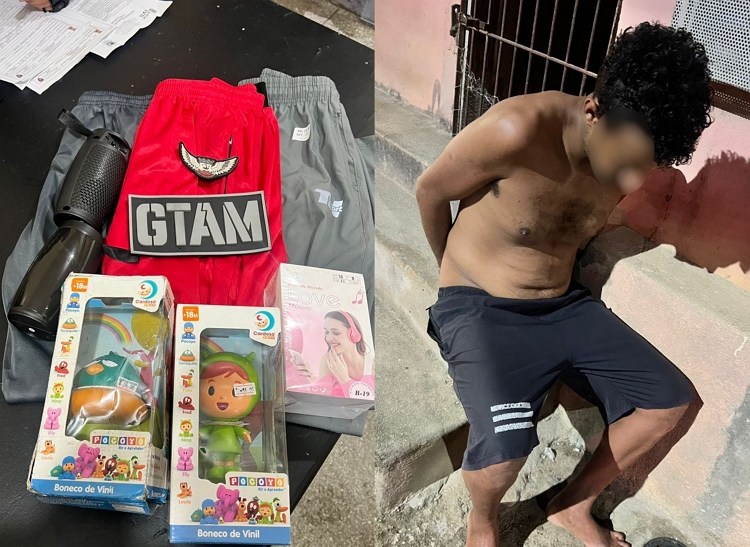 Durante o patrulhamento, o homem foi localizado e abordado pelos guardas municipais. Segundo a corporação, ele confessou o crime e foi encontrado com diversos produtos furtados, incluindo um fone de ouvido, duas caixas de som e dois bonecos de vinil.