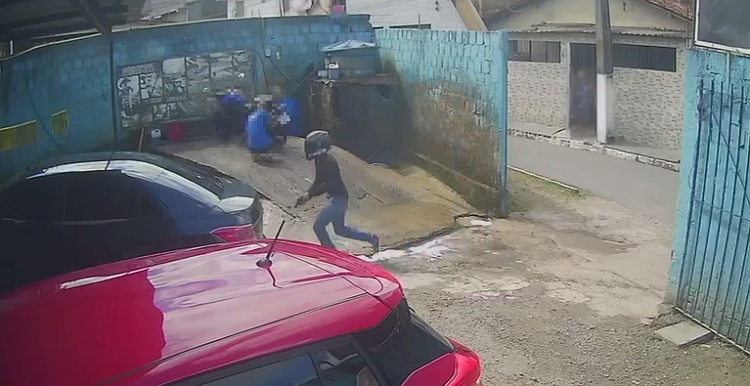 O assassino adentrou o local usando um capacete para esconder o rosto e atirou diversas vezes contra a vítima.