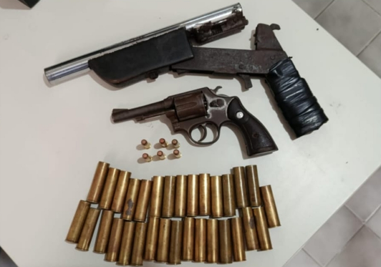 Durante a campana, os policiais conseguiram interceptar os suspeitos no momento em que retiravam o armamento de um tambor escondido em um curral de ovelhas, localizado ao lado da casa. No local, foram apreendidos um revólver calibre .38 com seis munições intactas e uma espingarda calibre 20, acompanhada de 31 munições do mesmo calibre.