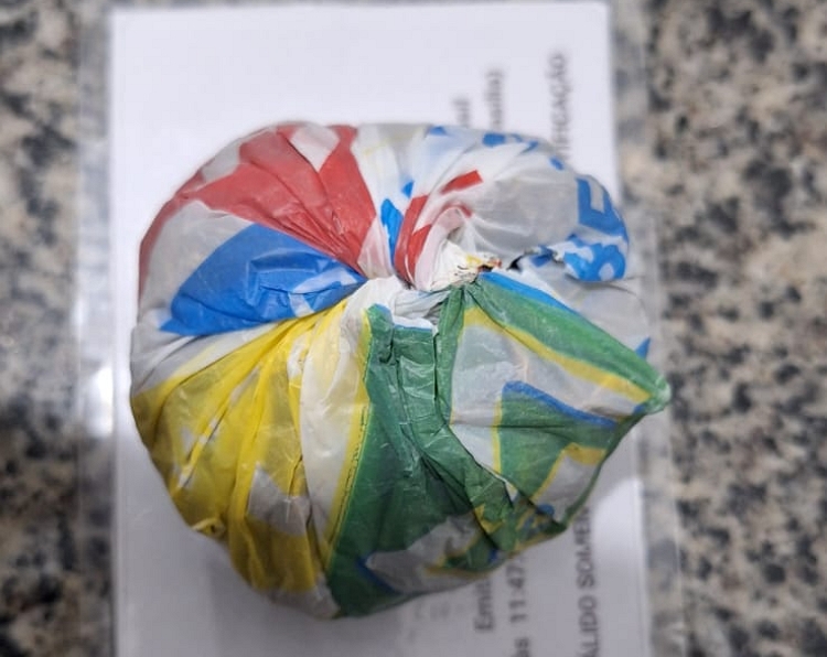 Durante a abordagem, foi encontrada com o garupa uma porção de aproximadamente 10 gramas de uma substância semelhante à maconha.