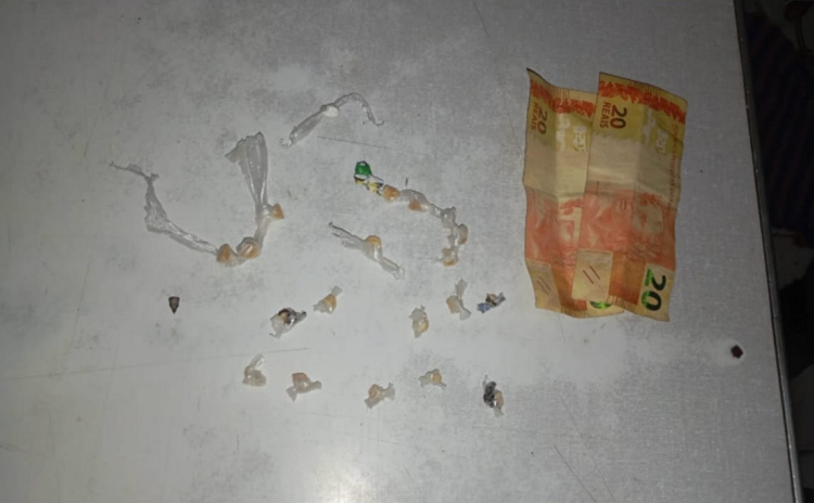 Durante a abordagem, os policiais apreenderam 21 pedras de crack, uma porção de cocaína e a quantia de R$ 40 em espécie com o suspeito.