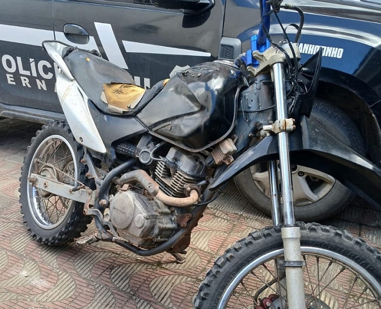 Na manhã desta segunda-feira (25), a Polícia Militar apreendeu uma motocicleta com sinais de adulteração na Travessa Duque de Caxias, em Canhotinho, no Agreste de Pernambuco.