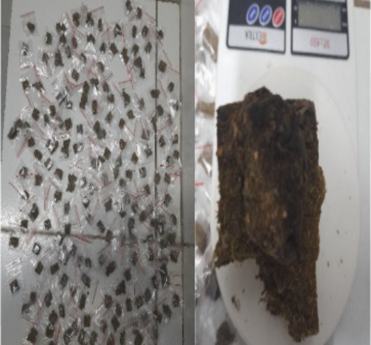 Ao chegar, o envolvido foi identificado e fugiu. No entanto, deixou cair uma sacola com 150 big bigs de maconha e outras 40g da mesma droga em pedaços maiores, duas balanças de precisão e embalagens.