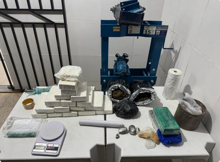 No total, foram apreendidos com a dupla 18kg de cocaína, 1,7kg de crack, 1,3kg de maconha, uma prensa hidráulica, uma balança de precisão e dois litros de ácido.