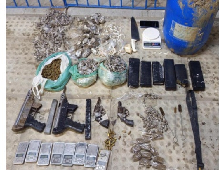Ao chegar, foi avistado um carro em alta velocidade deixando o local, onde estavam três dos envolvidos, sendo um deles o possível “gerente” da quadrilha. Eles foram presos e revelaram o local onde armazenavam as drogas e armas do grupo, possibilitando a apreensão, no total, de duas metralhadoras 9mm, dois revólveres calibre .32, munições, nove balanças de precisão, 3,550kg e 55 big bigs de maconha, 100g e 140 pedras de crack e 44 pinos de cocaína.
