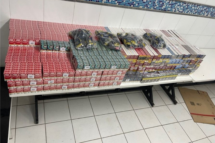 Após diligências foram encontradas 13 caixas, contendo 700 maços de cigarros de marcas variadas e quatro sacos de fumo da marca Trevo, totalizando significativa quantidade de produtos de origem ilícita.