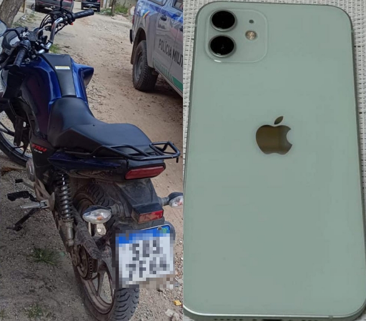 Durante rondas no bairro Bom Jesus 1, na Segunda Travessa Eronides Batista, os militares localizaram uma Honda CG 160 Fan, de cor azul, estacionada embaixo de uma árvore, com um capacete no guidão. Ao verificar a situação, constataram que o veículo tinha sido tomado de assalto na manhã do mesmo dia, junto com um iPhone.