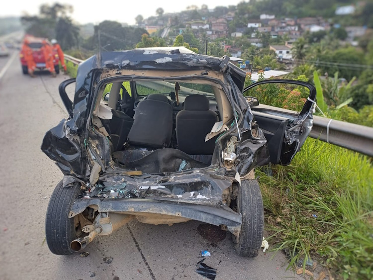 De acordo com informações, um Celta estava parado no acostamento com o pisca-alerta ligado quando foi atingido na traseira por um caminhão. O motorista do caminhão relatou que foi trancado por outro veículo e, ao desviar, acabou colidindo no carro.