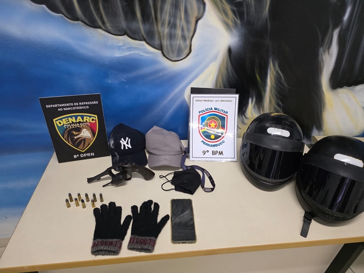 Durante a abordagem, realizada por volta das 14h30 na Rua Cristóvão Colombo, os policiais encontraram na cintura de Izaias um revólver calibre 38, municiado com seis cartuchos. Além disso, os dois utilizavam balaclavas e luvas pretas, reforçando a suspeita de que se preparavam para praticar um crime. No momento da ação, Izaias ainda tentou destruir seu celular ao arremessá-lo ao chão.