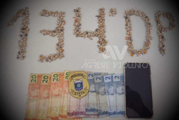 Após diligências investigativas e monitoramento, os agentes abordaram o suspeito e apreenderam 400 pedras de crack, já embaladas para comercialização, além da quantia de R$ 103,00 em espécie.
