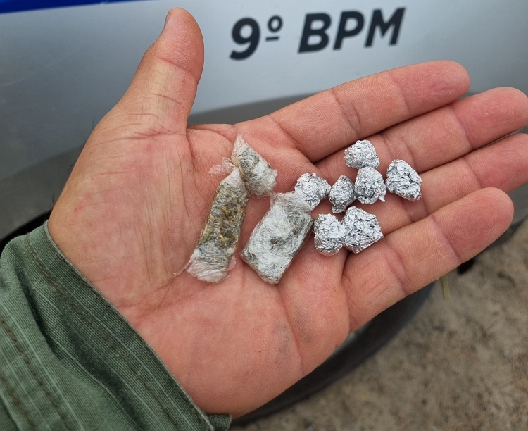 O policiamento conseguiu interceptar o suspeito, com quem ainda foram encontradas duas porções de maconha e duas de crack. Em seguida, durante a varredura no perímetro, os militares localizaram mais sete porções de crack e três de maconha, que haviam sido descartadas pelo acusado.