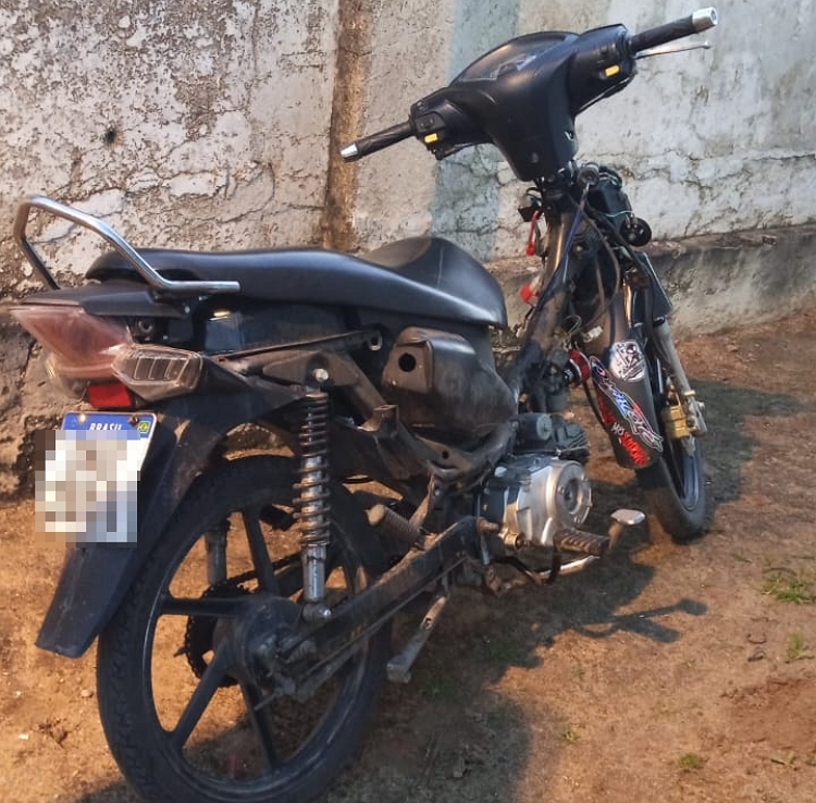 Durante a abordagem, os policiais constataram que o condutor, maior de idade, não possuía Carteira Nacional de Habilitação (CNH). A motocicleta, segundo o suspeito, pertencia a um cliente, estava sem o cano de escape e apresentava sérios problemas de conservação.