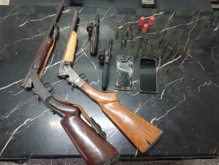 Foi dada voz de prisão ao trio e com ele apreendidos dois revólveres calibre .38, com 13 munições do mesmo calibre, 01 espingarda calibre .36, com 15 cartuchos, e uma espingarda calibre 12, com três cartuchos.