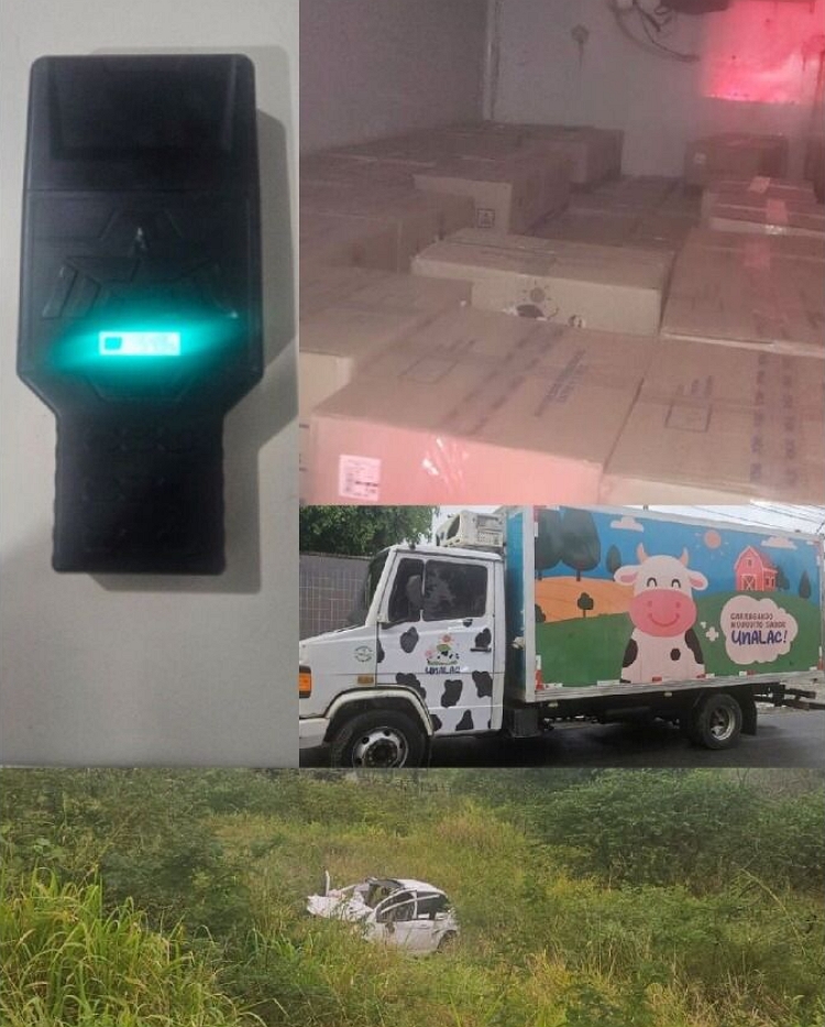 O policiamento deu continuidade às diligências e conseguiu localizar o veículo roubado. Além da carga, foram apreendidos um bloqueador de sinal e uma pequena quantidade de maconha.