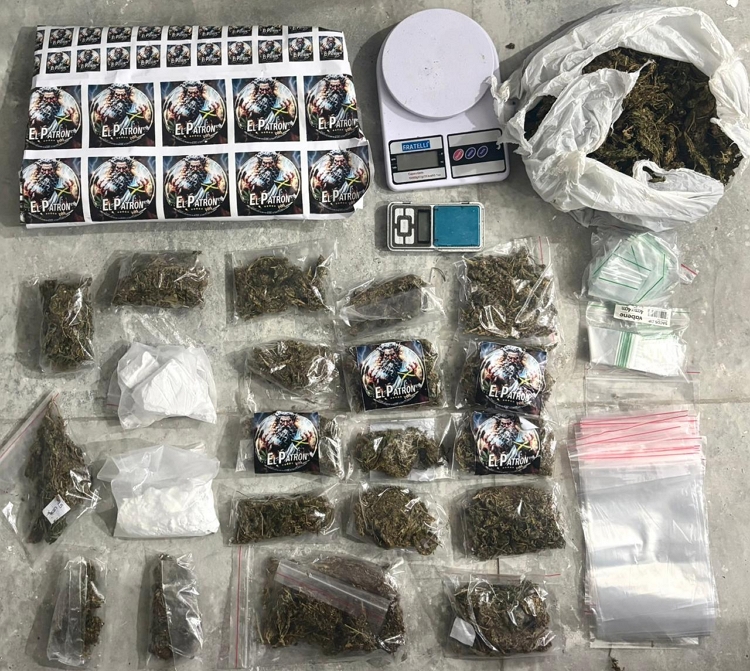 Durante buscas no local, o efetivo apreendeu ainda cerca de 800 gramas de maconha, 250 gramas de cocaína, duas balanças de precisão, 500 invólucros plásticos usados para embalar as drogas e etiquetas adesivas com a logomarca “El Patrón”, utilizadas para identificar os entorpecentes.