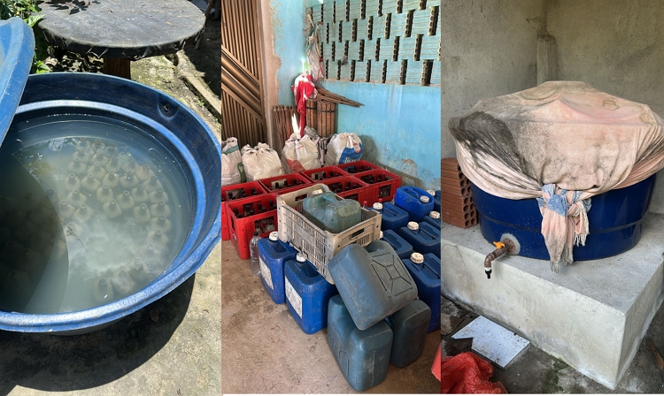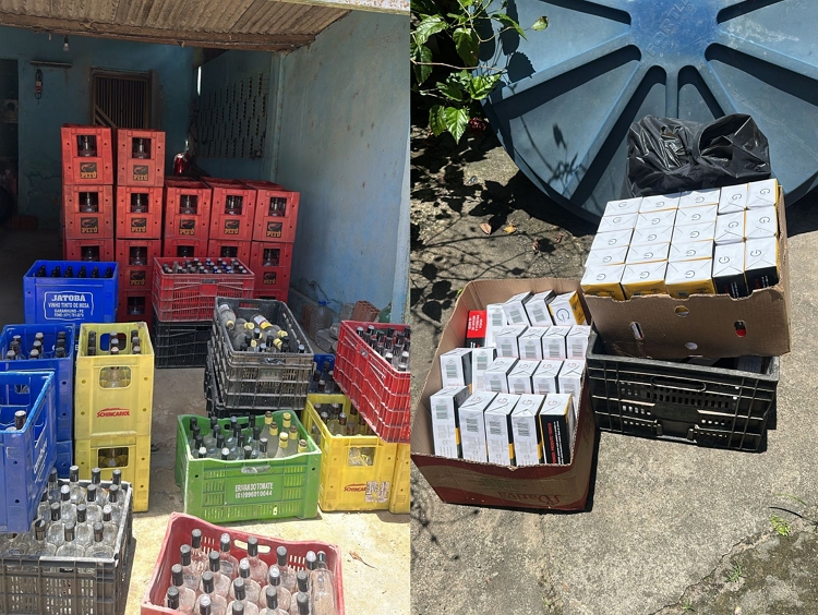 A operação foi deflagrada após denúncias sobre a produção e venda de bebidas de origem duvidosa. No local, os agentes encontraram 26 galões de líquido semelhante a álcool, seis sacos de vasilhames vazios, 30 grades de bebidas alcoólicas, além de caixas d’água utilizadas no processo de produção e um botijão adaptado com torneira para engarrafamento.