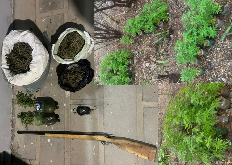 Durante a varredura na propriedade, foi localizada uma sementeira com 560 pés de maconha, além de uma espingarda tipo soca-soca e uma balança de gancho digital. A equipe seguiu até uma casa próxima, onde encontrou o dono das terras. Questionado, ele informou que todo o material pertencia ao seu filho, que não foi localizado.