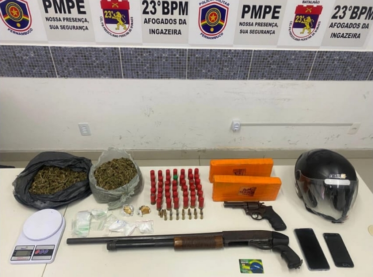 No local, foi preso um segundo envolvido, que cumpria prisão domiciliar. Após buscas, foram apreendidos um revólver calibre .38, 2,975 kg de maconha, 51 g de crack, 72 g de cocaína, munições, balança de precisão, celulares. Todo o material e os dois suspeitos foram encaminhados à Delegacia de Flagrantes em Afogados da Ingazeira para as providências cabíveis.