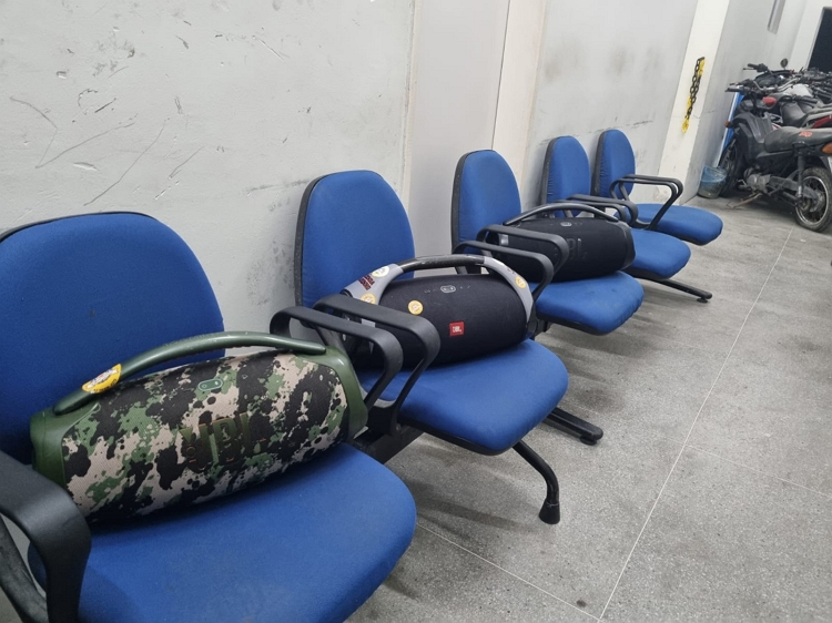 Durante a ação, os policiais também verificaram outro estabelecimento nas proximidades, onde alguns homens estavam reunidos em uma mesa com duas caixas de som portáteis da marca JBL, igualmente em volume alto.