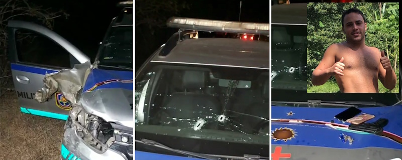 Durante as buscas, os policiais localizaram duas motocicletas com as características repassadas. Na tentativa de abordagem, um dos veículos colidiu com a viatura, enquanto o segundo suspeito efetuou disparos contra os militares. O primeiro homem tentou fugir a pé e, ao colocar a mão na cintura — onde os policiais visualizaram o cabo de uma arma —, acabou sendo alvejado durante a troca de tiros.