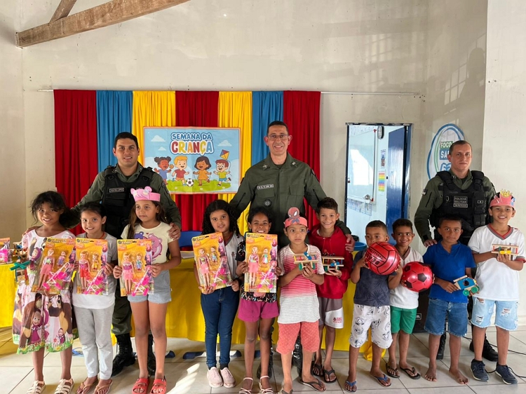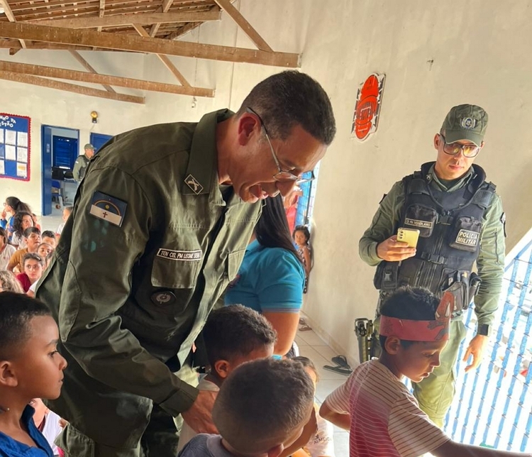 TENENTE-CORONEL LEONE SENA PRESTIGIA AÇÃO EDUCATIVA E ENTREGA DE BRINQUEDOS EM SÃO BENTO DO UNA