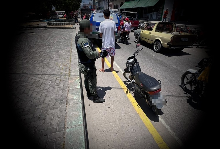 De imediato, o efetivo policial iniciou o acompanhamento e conseguiu interceptar o indivíduo na Praça Central da cidade. Durante a abordagem, o condutor informou não possuir Carteira Nacional de Habilitação (CNH).